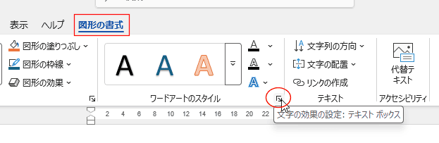 ワードアートスタイル グループにあるダイアログボックス起動ツールをクリックします。