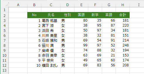- データリスト内のセルを選択して、[Ctrl]+[A]でデータ範囲を選択します。