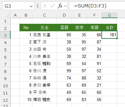 | Shift + Tab | 1つ左のセルへ移動 (Tabの逆) |