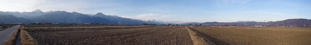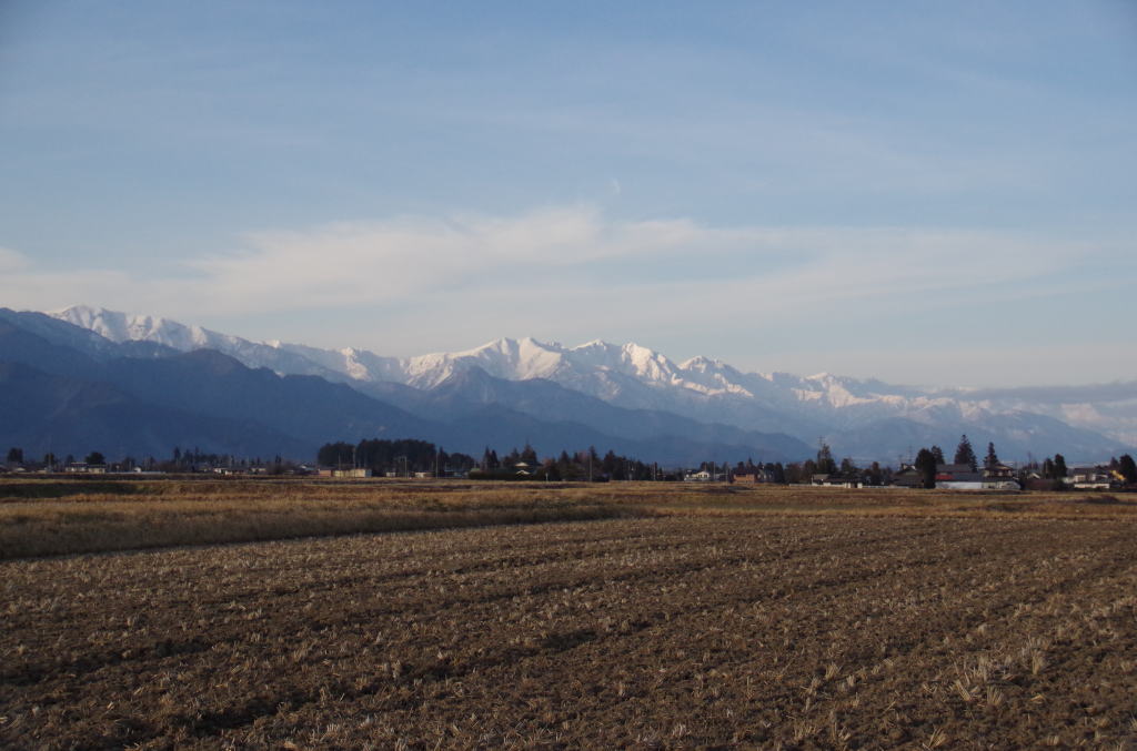 穂高柏原の稲田から望む北アルプス