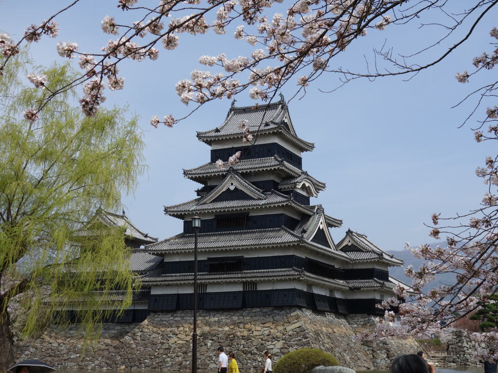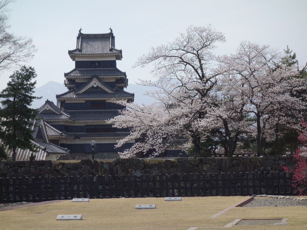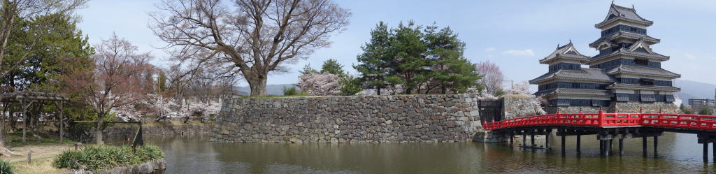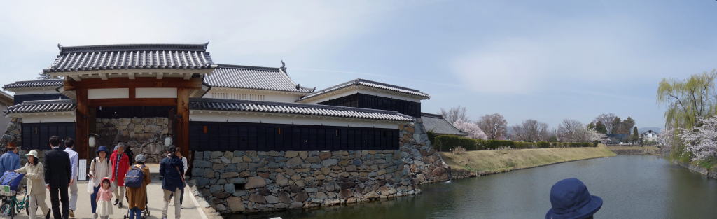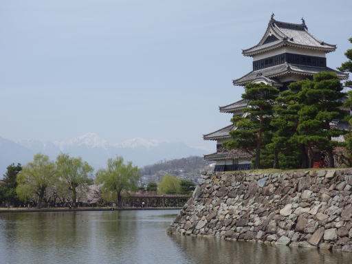 太鼓門をくぐり外堀とテレビ信州松本支社 松本城と北アルプス常念岳 ![]() ![]() |