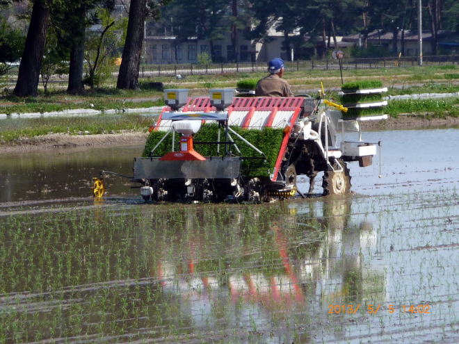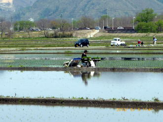 5月5日、田植えが始まっている時期ということで田植えの写真を撮りに行きました。ペンションに最も近い穂高有明の田圃と大王わさび農場に近い穂高御宝田の田圃です。