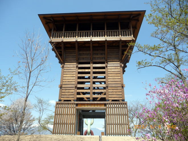 安曇野を一望できるビュースポット長峰山の山頂にある展望台が本日(2013年4月26日)リニューアルオープンしました。