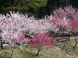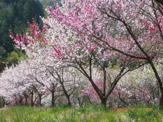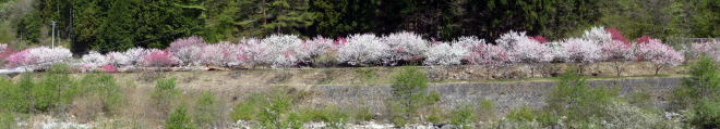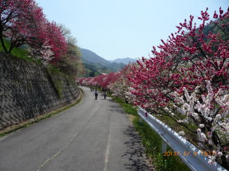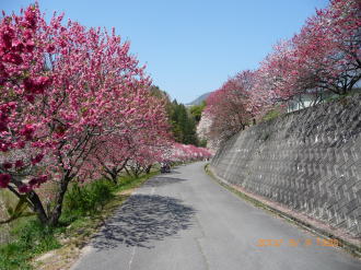 安曇野の明科でも民家に植えてある1本の花桃がとても綺麗で、ホームページに載せたことがありますが、これだけ多くの花桃が咲き誇っている様子は圧巻です。村おこし、地域活性化事業なのでしょうか、素晴らしいことですね。