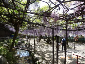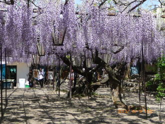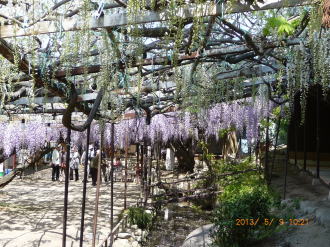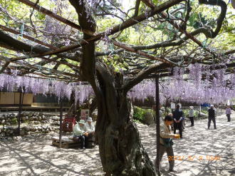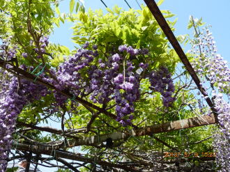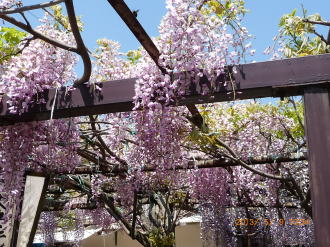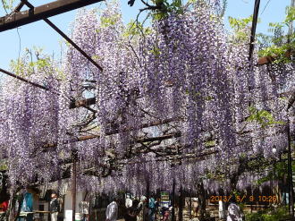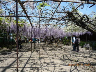 横浜に居る時に足利フラワーパークで素晴らしい大藤を見ました。それに比べると当然のことながらずーと小規模ですが、綺麗に咲いていました。入場料は100円、地元の人達が管理をし、軽食も食べられるような売店もありました。