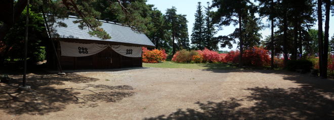 写真の2枚目と3枚目は、搦手門と大手門跡を外から撮ったものです。4枚目は搦手門近くの大きなつつじで、三つ頭つつじ園の北東の端っこに位置しています。5枚目から20枚目までは、皇太神社の周りをぐるりと巡りながら撮ったものです。15枚目は土塁の上から西方向を撮ったパノラマ写真です。右手に拝殿の屋根が見えています。20枚目は三つ頭つつじ園全体を撮ったパノラマ写真です。21枚目はマレットゴルフ場の案内板、22枚目から24枚目までは皇太神社、23枚目は拝殿、24枚目は拝殿の裏にある本殿です。25枚目以降は「真田庵」と「真田氏歴史館」の門等を撮った写真です。