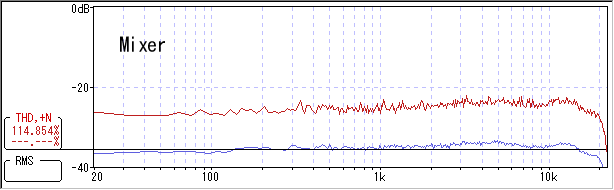 サウンドボード : Sound blaster Live (*Out put at -10db *input/gain at -1.0db) アナログミキサ : Behringer MX 1604A オッシレータ WaveGene1.2 スペアナ WaveSpectra1.2
