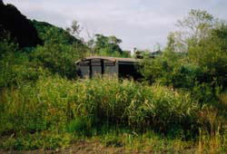 途中、ゲーム中にでてきた廃列車を確認する。線路は現在も現役の路線らしい、イベントの写真よりも草の丈が長いのは今が秋だからかな。