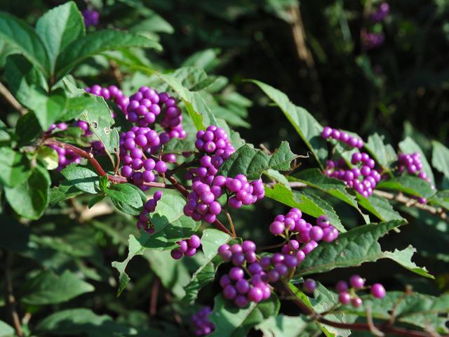 紫の粒粒は見ての通り花ではなく実なのだが、華やかで目を引くので、花の紹介の中に入れておく。この苗の購入時は「小紫式部」とあった。 | ||||