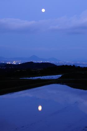 近江富士=三上山に昇った月が水を漲った田に映る↓ | ||||