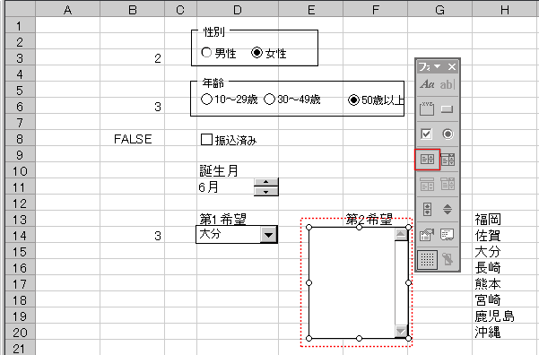 | フォームについて | オプションボタン | チェックボックス | スピンボタン |
