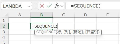 ちなみに、=seq と入力すると、「SEQUENCE」だけが表示されるので、[Tab]キーを押すだけです。