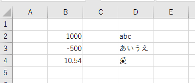 - 標準状態では数字はセルの右端に、文字は左端に詰めて表示されます。