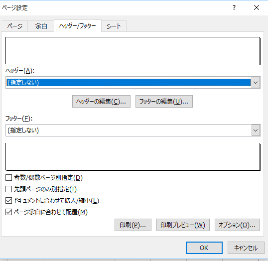 [ヘッダー]ボタンをクリックし、(指定しない) を選択します。