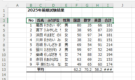 - すべての列の幅が自動調整できました。