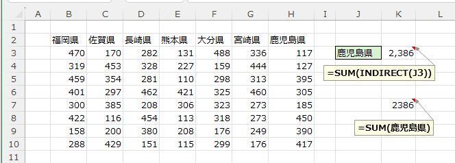 セルを参照する場合は INDIRECT関数を使って指定します。