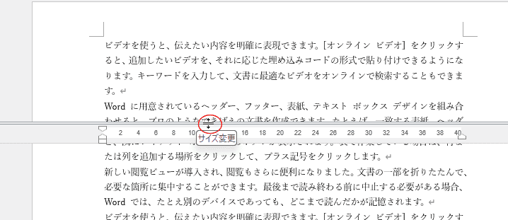 - 表示モードが[印刷レイアウト]では『垂直ルーラー』が表示されますが、それ以外では表示されません。