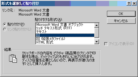 - 編集→形式を選択して貼り付けで「図」を選択します。