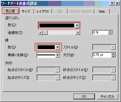 - 書式設定で塗りつぶしの色、線を「黒」に設定します。