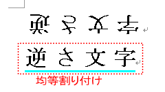 - 文字間隔が広くなるので、下の文字列の間隔を均等割り付けで広げます。