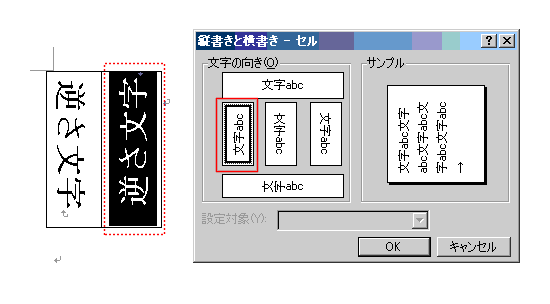文字の向きをそれぞれ選択します。