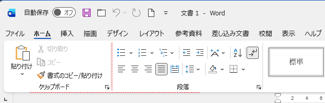 - [ホーム]タブのクリップボード グループと段落 グループの間にあったフォントグループが消えました。