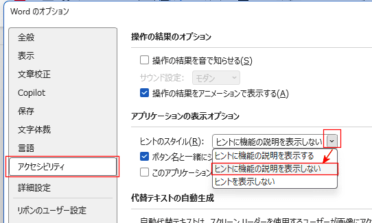 - Wordのオプション ダイアログボックスを開きます。