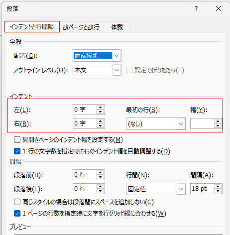 - インデントの設定で文字位置を揃えたい時は(B)ダイアログボックスで設定するがお勧めです。