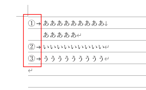 - 2行に分けたいのに、各行にマークや番号がつく?