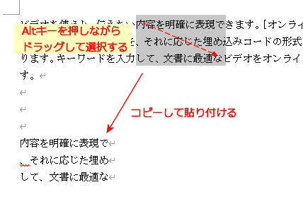 - 文単位で(句点「。」まで)選択するには、[Ctrl]キーを押しながら文をクリックします。